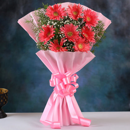 Ever wondered which flower describes all your feelings? It is the gerbera! This one such bloom has graced us with its beauty before humankind. Famously known for symbolizing loyal love, purity, and innocence, it can be gifted on any occasion. Celebrate your sibling’s birthday with a bunch of hot and baby pink gerberas in a vase. Such an arrangement will instantly brighten the room and mood. Send the season’s wishes to your relatives by ordering multi-colored gerberas bouquets. The shades of red, pink, orange, yellow, and white are so stunning that they can spruce up any corner. Make your parents' anniversary memorable by ordering an arrangement of pink and white gerberas. By using our online same-day flower delivery you can make their special day extraordinary. However, that is not all. You need not only give a beautiful gerbera bouquet but also something more. We have a collection of branded chocolates, sinful cakes, personalised home decor items, and hampers that will make your gift fancier. So, stop dilly-dallying and send these blooms to your loved ones right away.